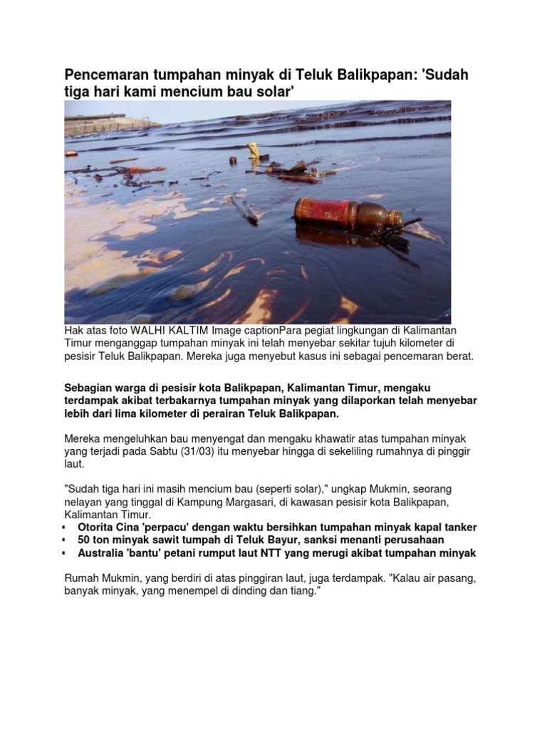 Tabrakan Kapal Yang Menyebabkan Pencemaran Laut PDF